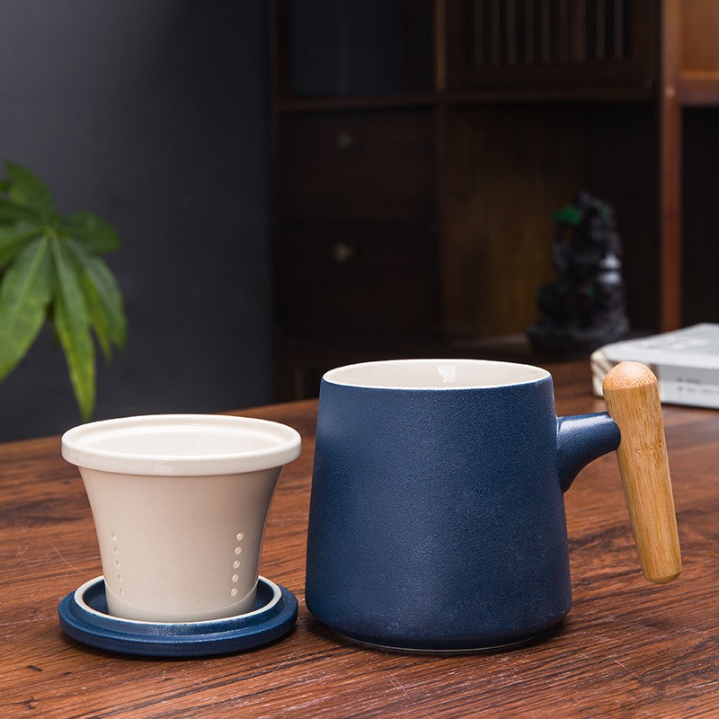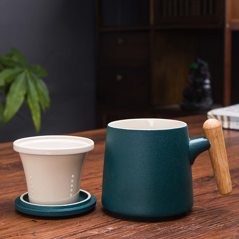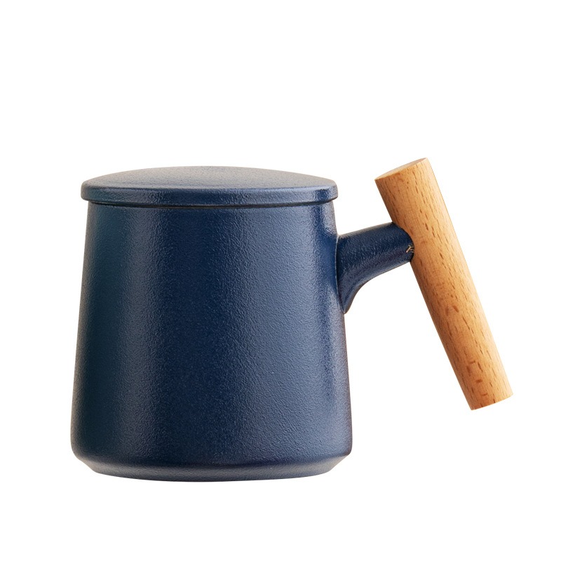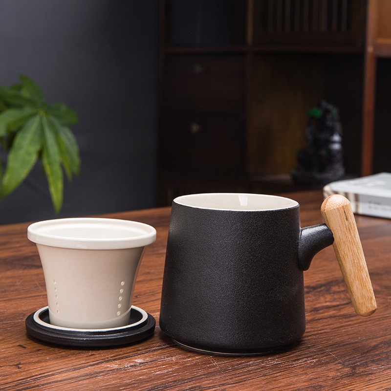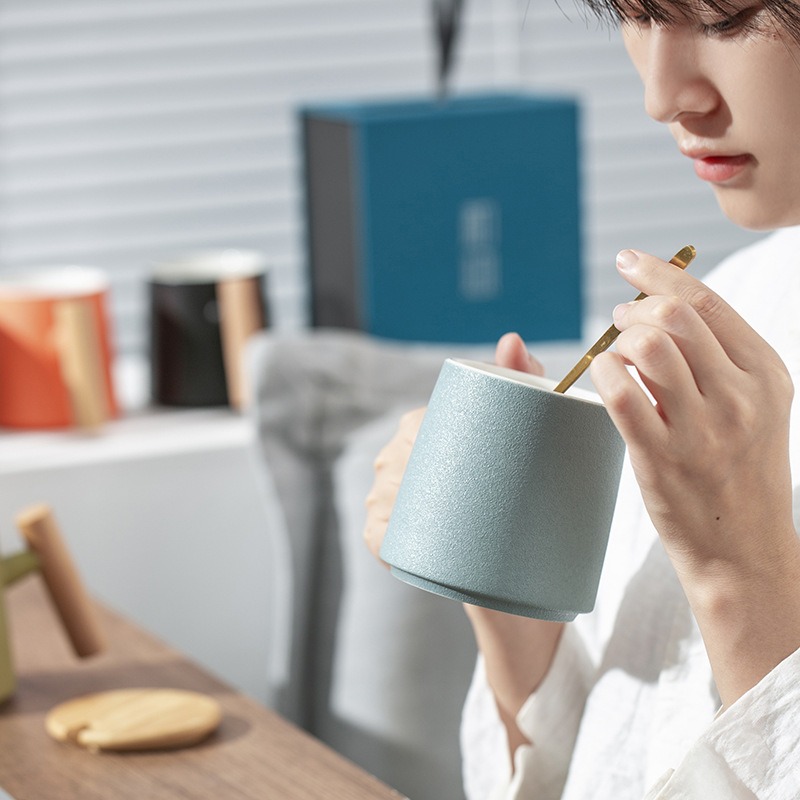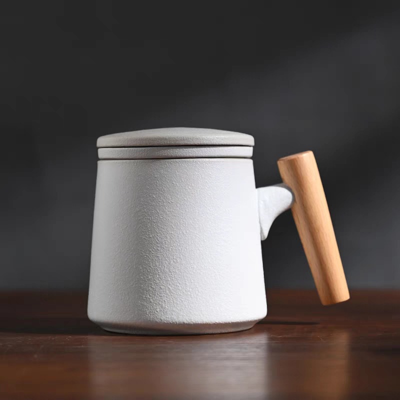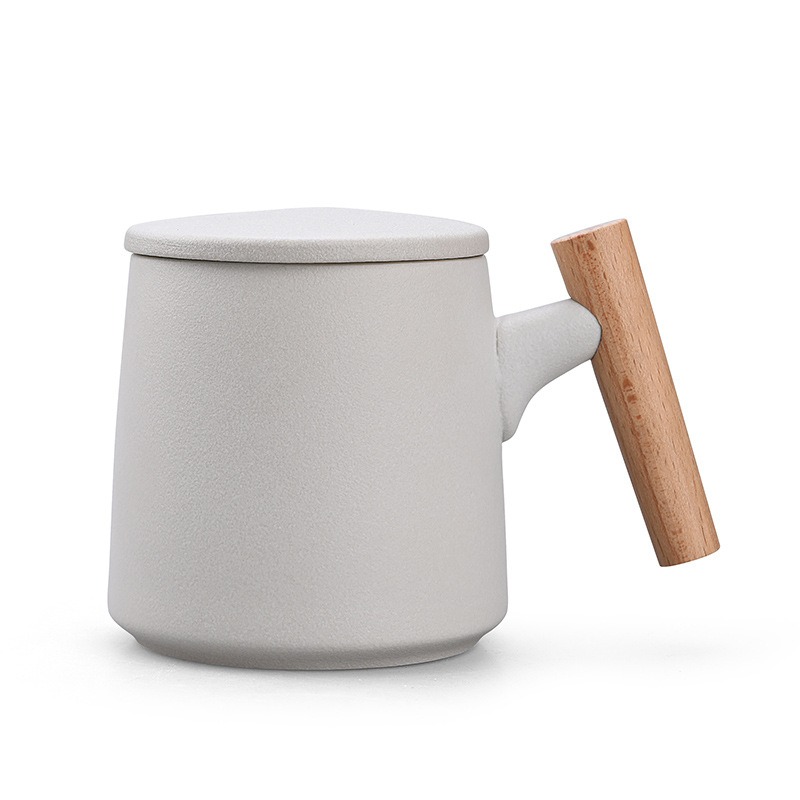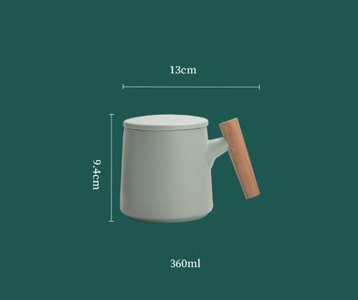 Gift Set แก้วน้ำเซรามิกสไตล์ญี่ปุ่นแบบเรียบ ด้ามไม้เคลือบ พร้อมฝา แก้วกาแฟสกรีนโลโก้ ทำเป็นของพรีเมี่ยม ของชำร่วย