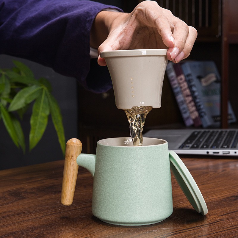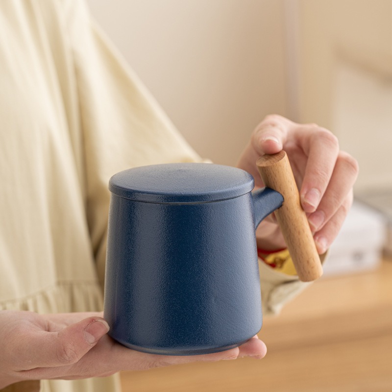 รับผลิต Gift Set แก้วน้ำเซรามิกสไตล์ญี่ปุ่นแบบเรียบ ด้ามไม้เคลือบ พร้อมฝา แก้วกาแฟสามารถสกรีนชื่อ , ภาพหรือโลโก้ต่างๆ